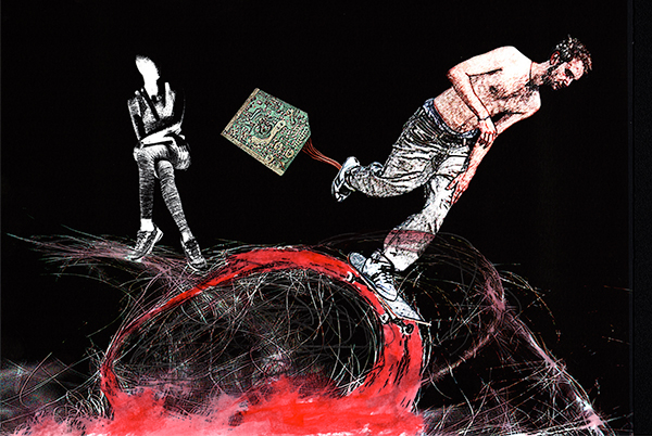 ‘Skateboarder’ – mixed media on paper (detail), 2025.